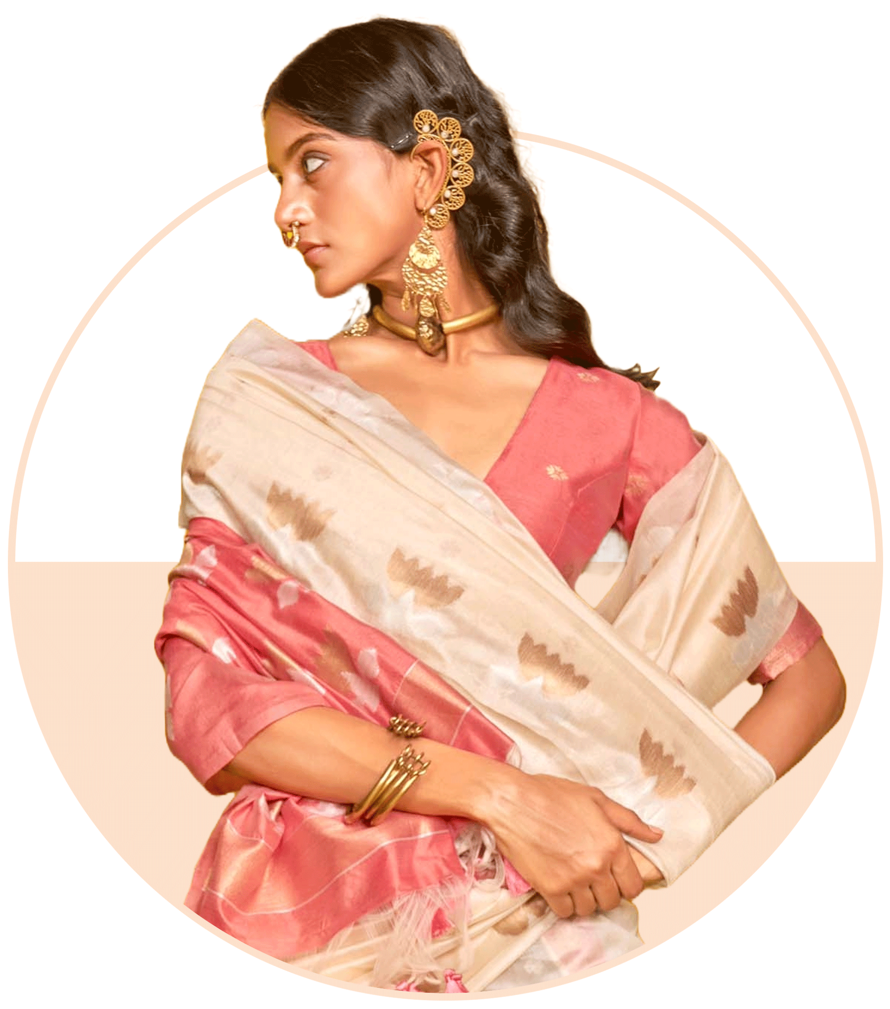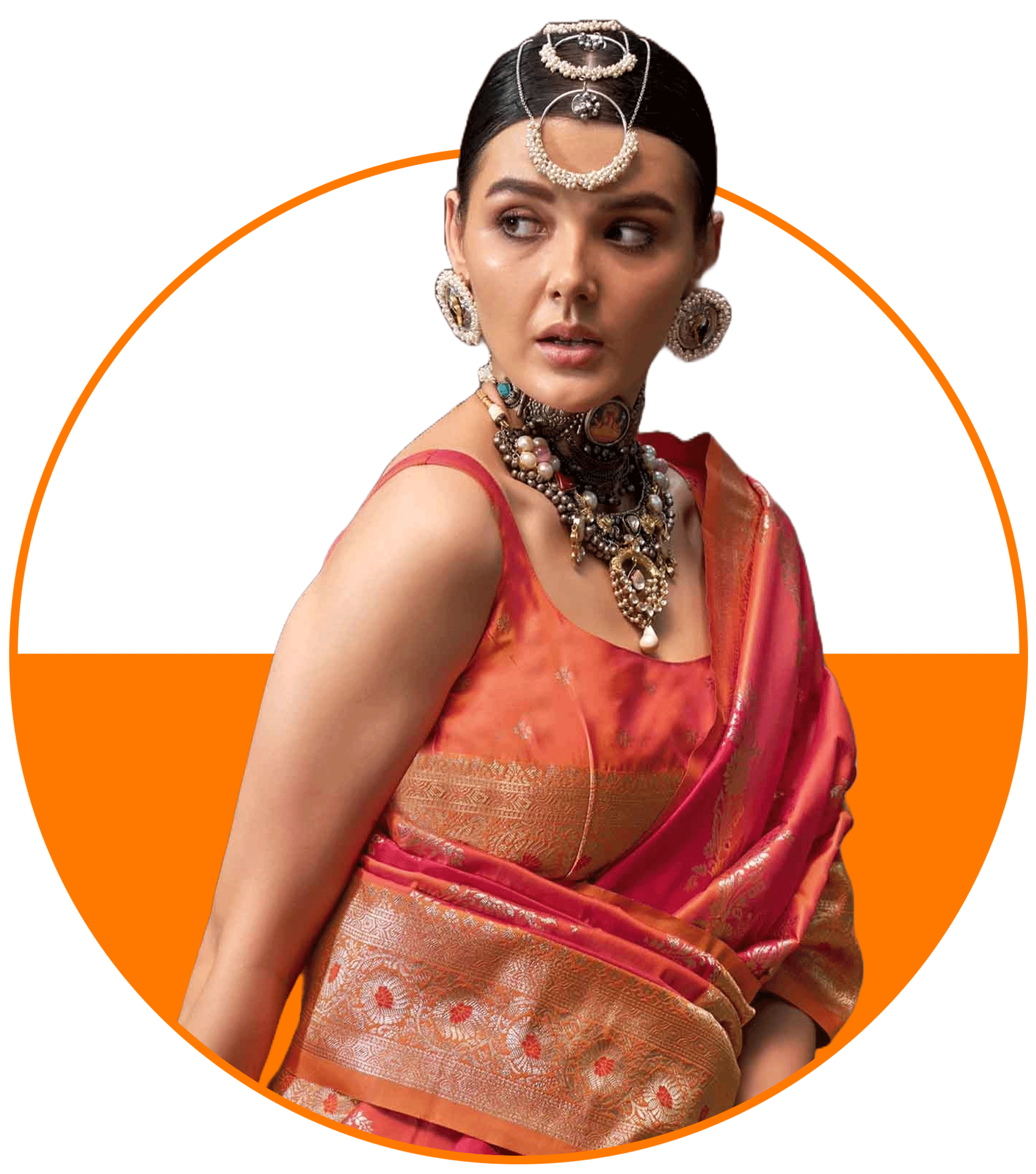 Pure Banarasi Katan Silk Saree – Peach & Pink