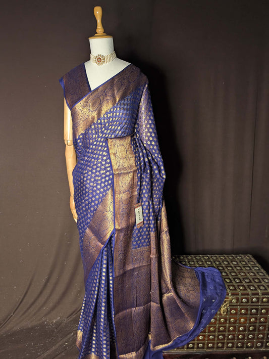 Peacock Blue Pure Khaddi Georgette Banarasi Silk Saree