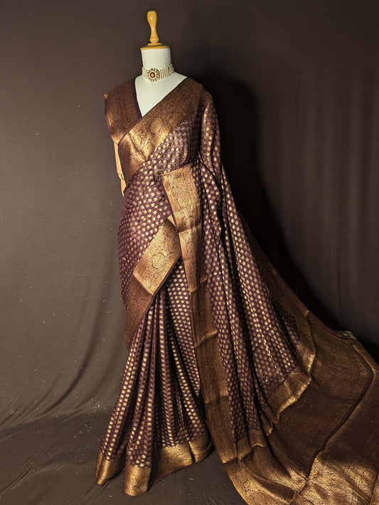 Brown Pure Khaddi Georgette Banarasi Silk Saree