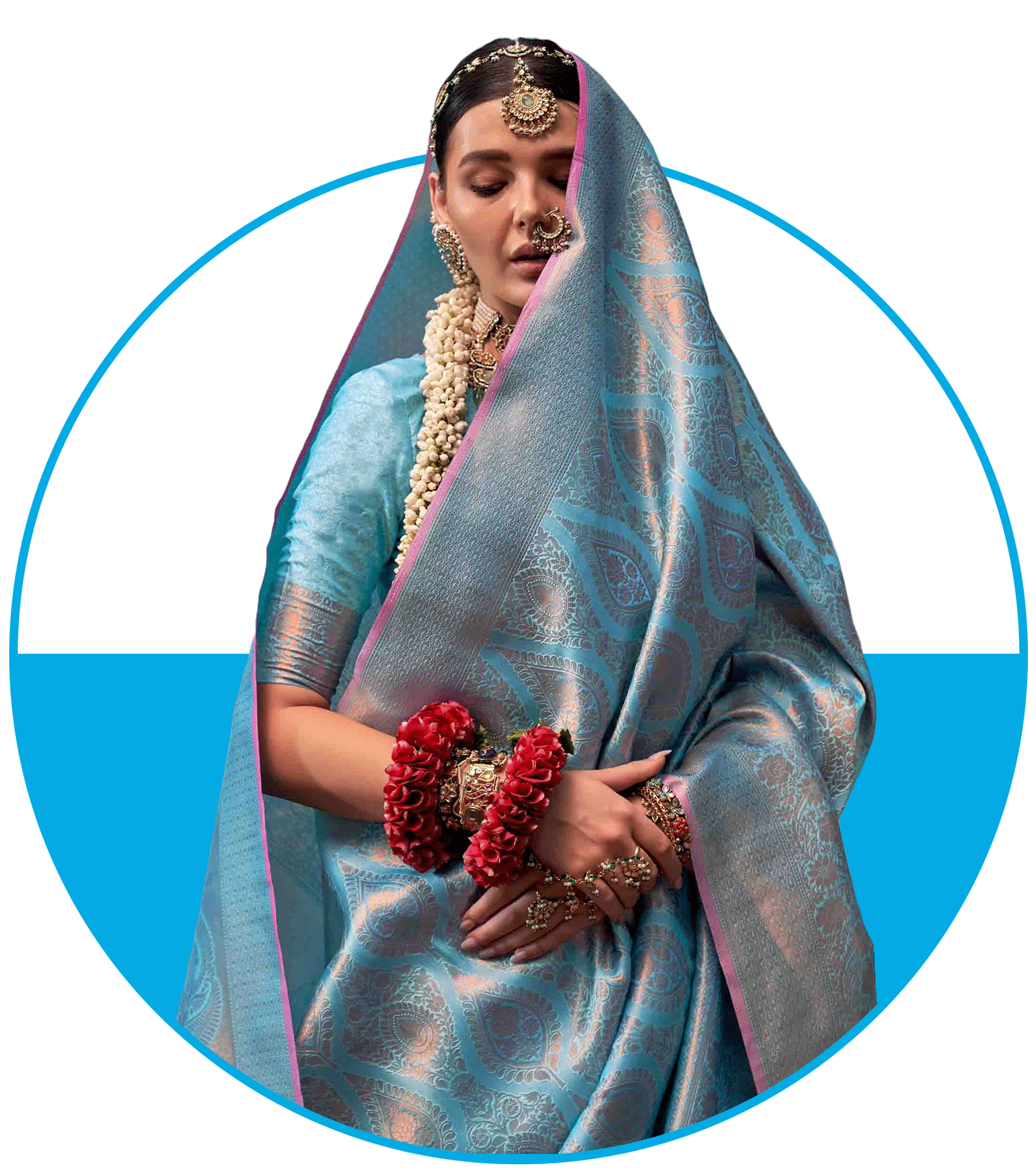 Traditional Pichwai Banarasi Saree - Electric Blue