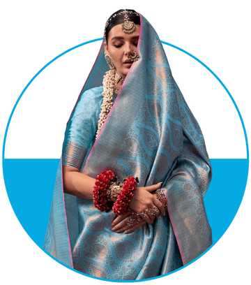 Pure Banarasi Katan Silk Saree – Dark & Light Blue