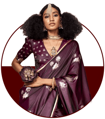 Ethnic Zari Silk Blend Banarasi Saree - Magenta