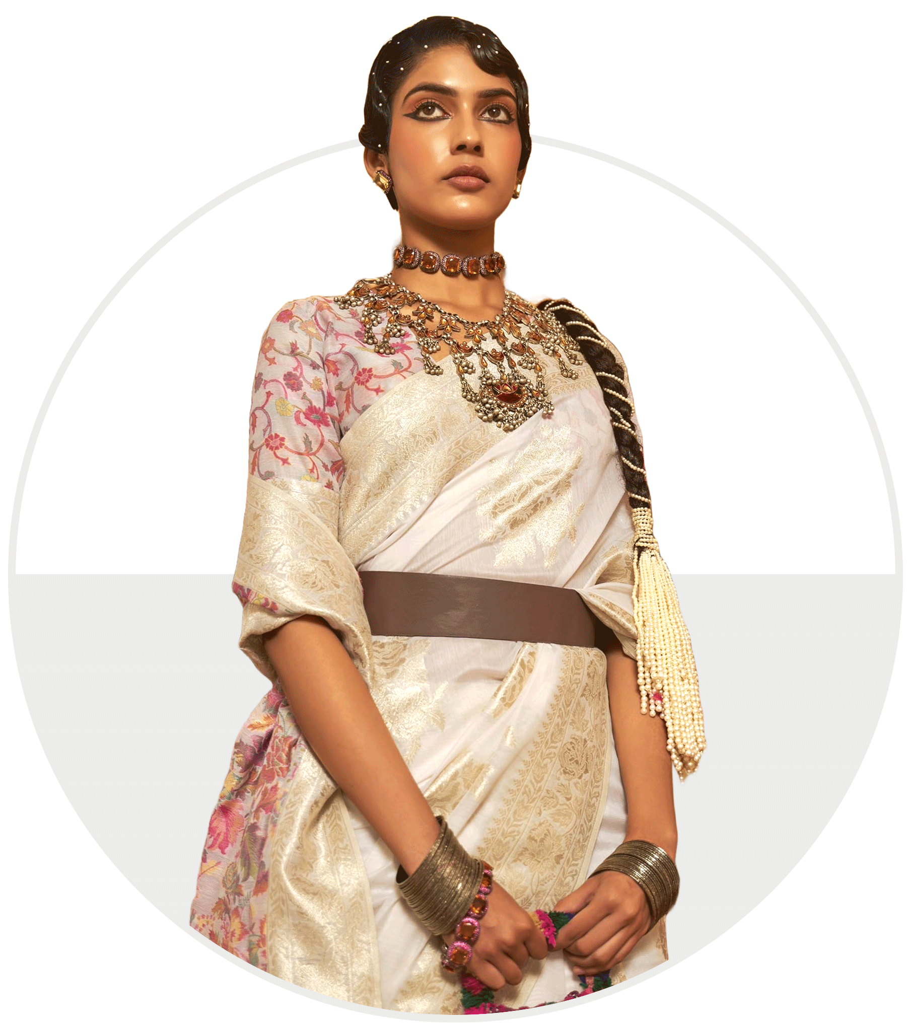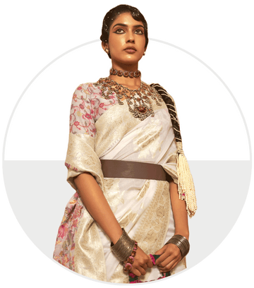 Pure Banarasi Tissue Silk with Hand Embroidered Kardana Border - Golden White