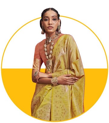 Metallic Tissue Saree - Honey Gold