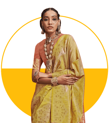 Pure Banarasi Tissue Silk with Hand Embroidered Kardana Border - Golden Yellow