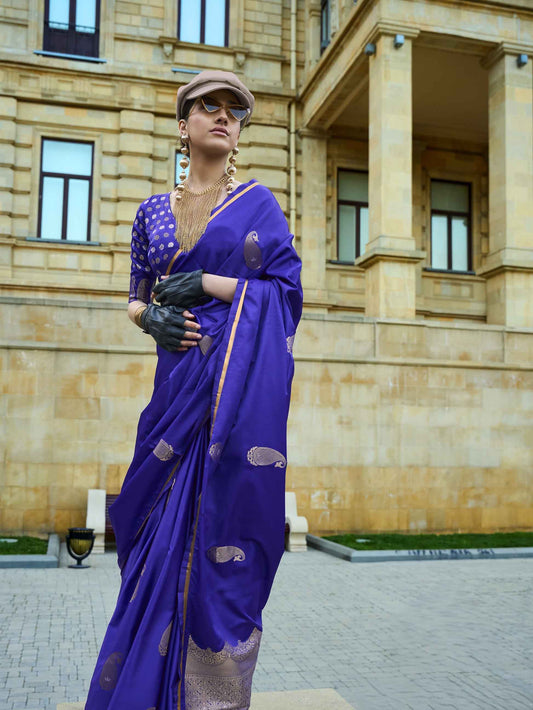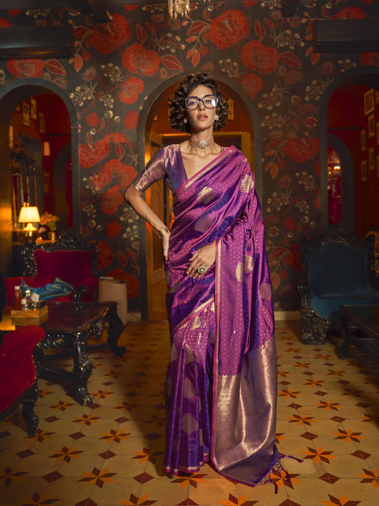 Pure Satin Handloom Weaving Silk Saree with Zari Buti & Heavy Pallu - Royal Purple