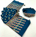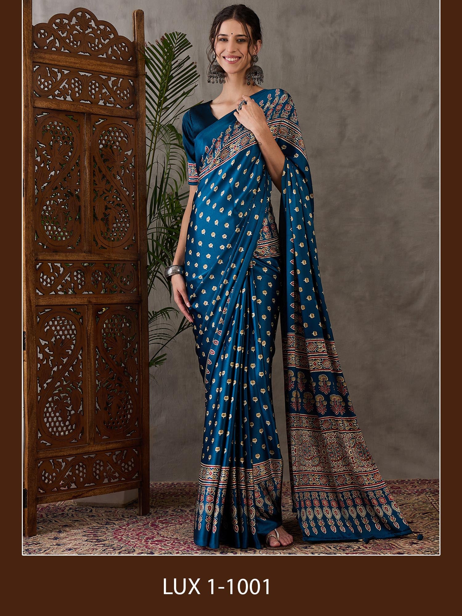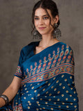 Description: A beautifully crafted saree with fine Ajrakh-inspired motifs that carry a rich traditional charm. The intricate border and highlight add elegance, making it perfect for festive wear or special gatherings.