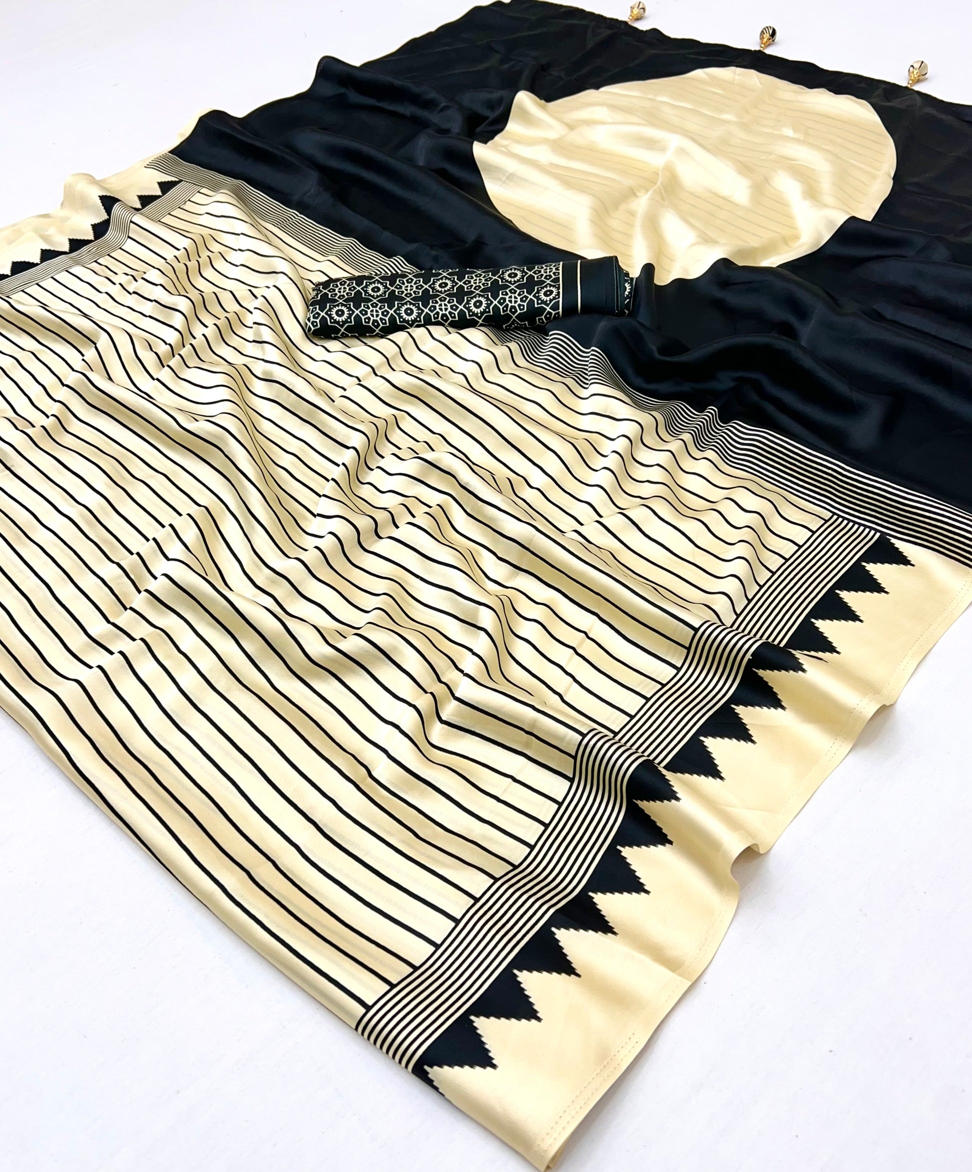 Description: A beautifully crafted saree with fine Ajrakh-inspired motifs that carry a rich traditional charm. The intricate border and highlight add elegance, making it perfect for festive wear or special gatherings.
