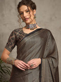Beige and Black Gajji Silk Saree with Multicolor Polka Pallu