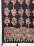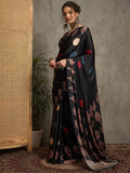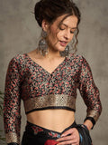 Black Gajji Silk Saree with Red Leaf Buta, Gold Border & Multicolor