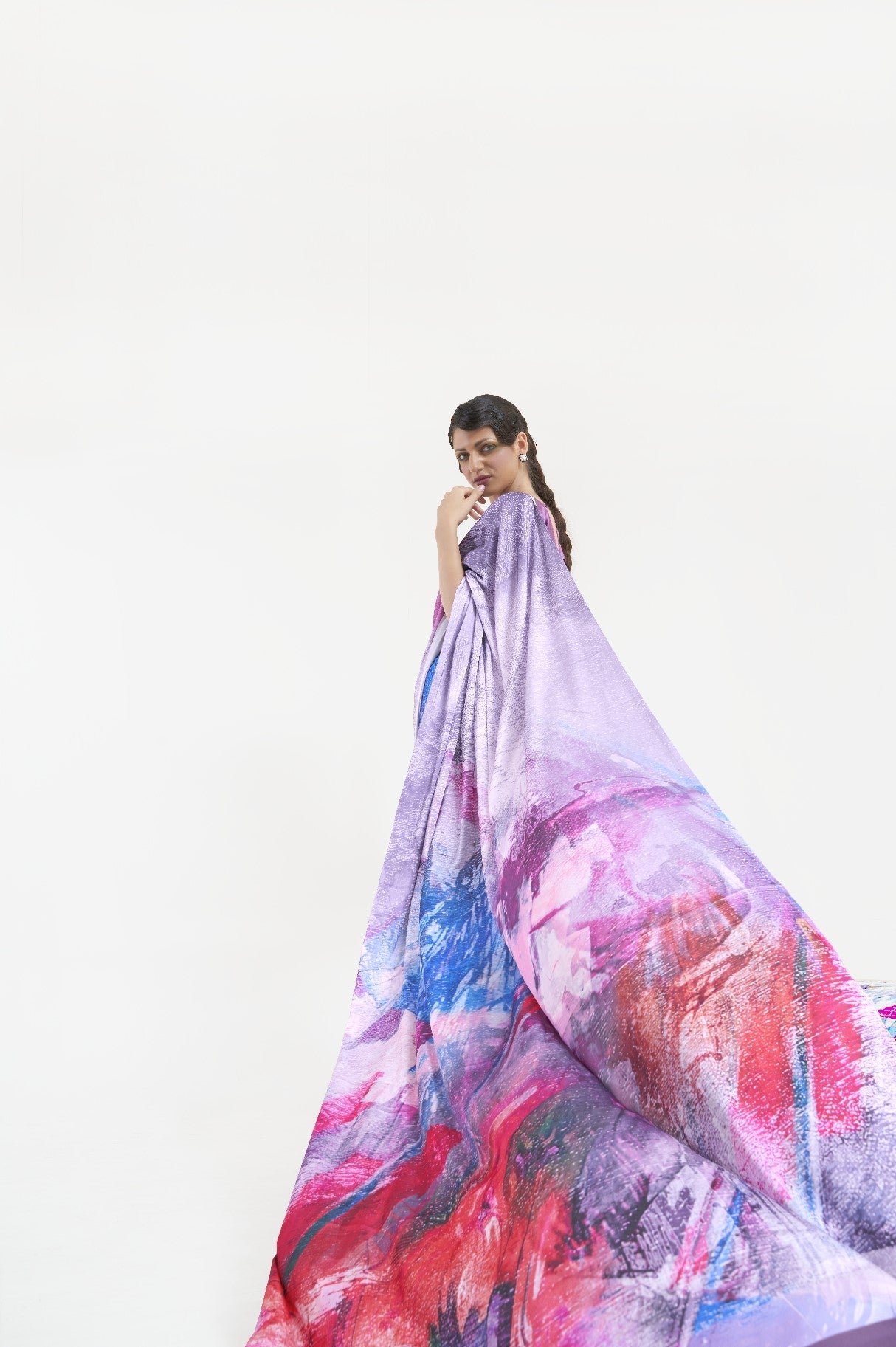 A captivating collection of digitally printed sarees on glossy satin, blending vibrant florals and modern abstract motifs—designed to elevate your look at semi‑formal occasions or festive events with ease and elegance.