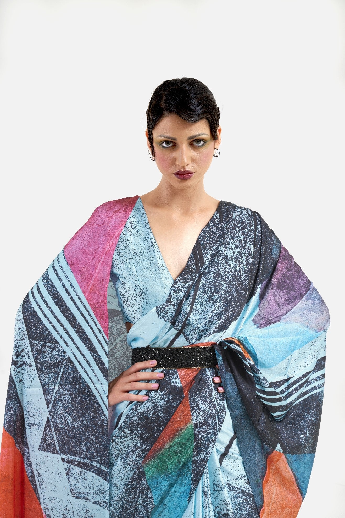 A captivating collection of digitally printed sarees on glossy satin, blending vibrant florals and modern abstract motifs—designed to elevate your look at semi‑formal occasions or festive events with ease and elegance.