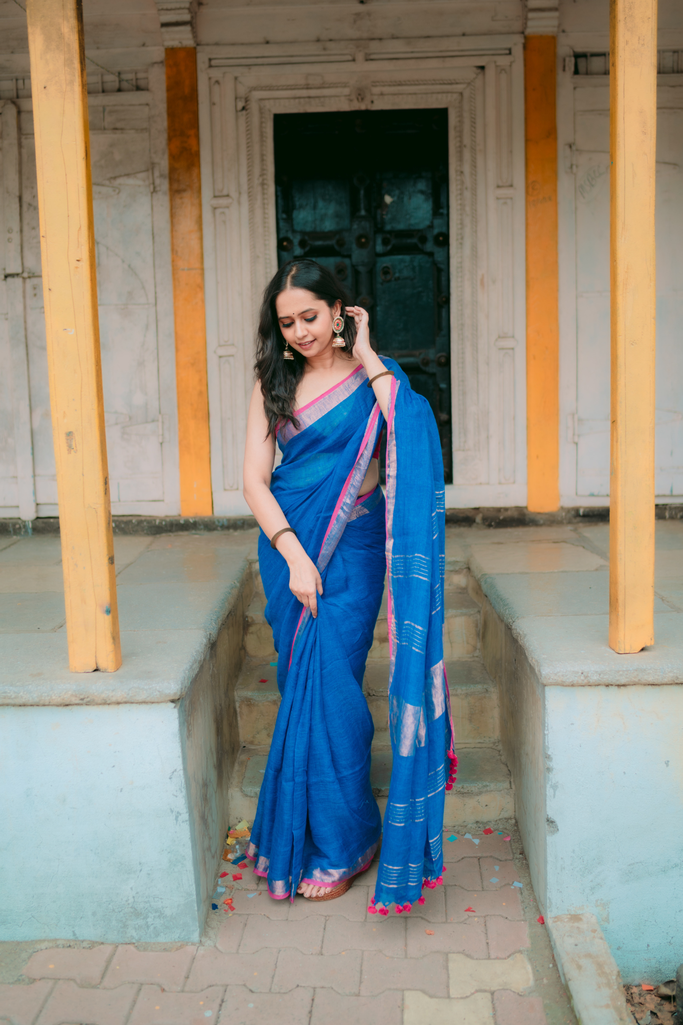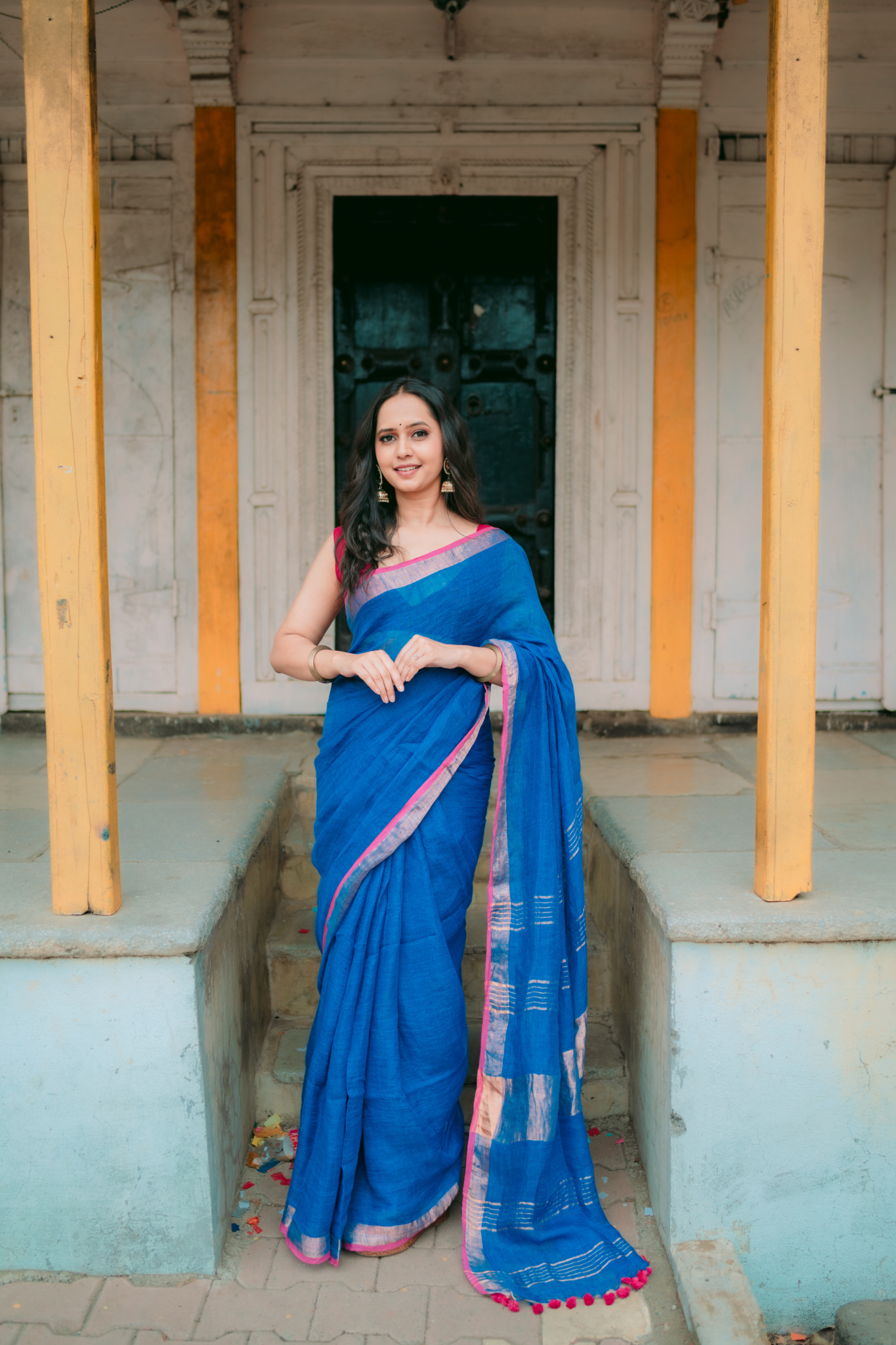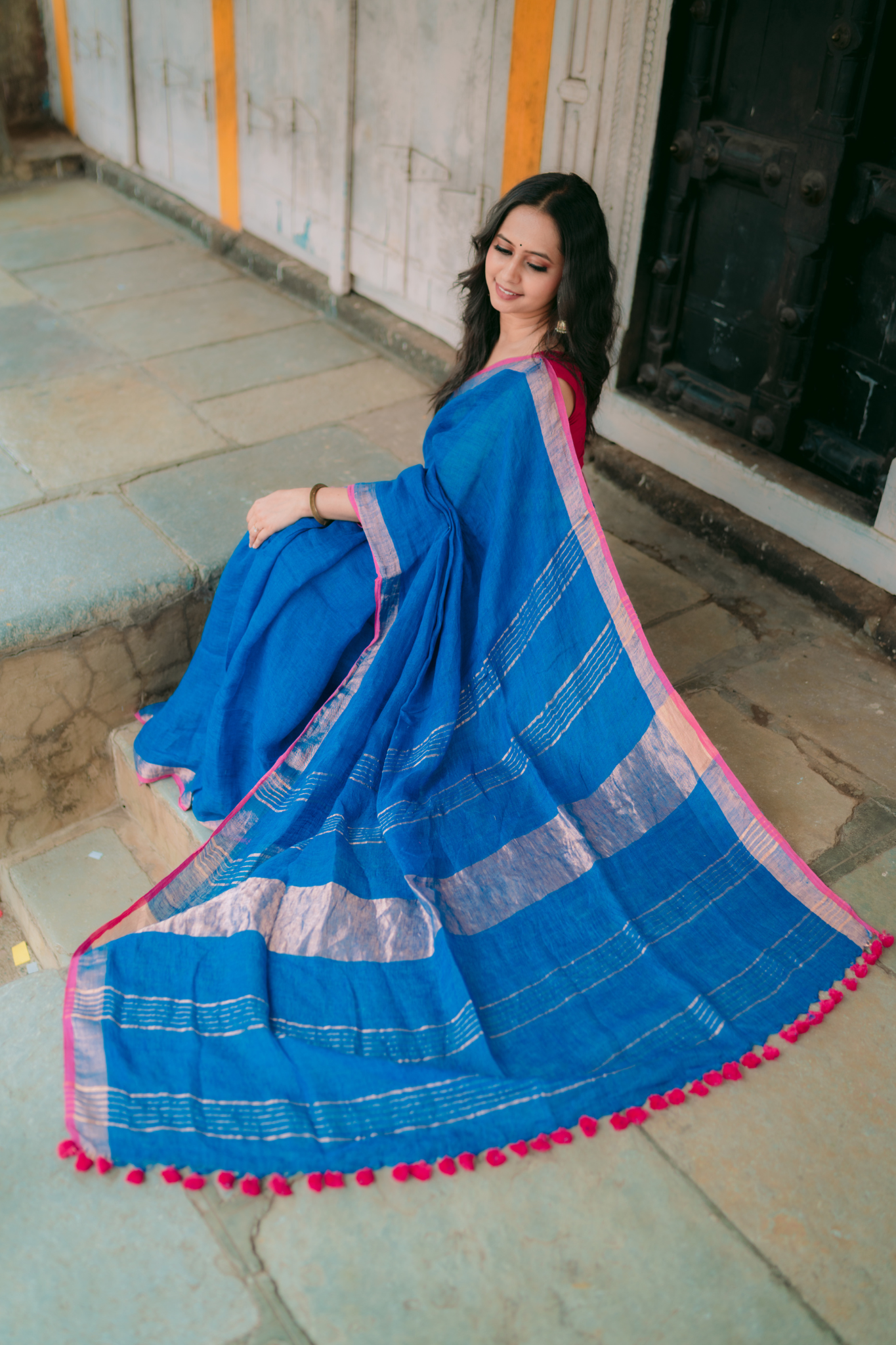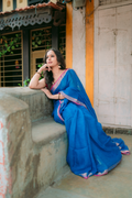 Pure Linen Handwoven Saree - Blue