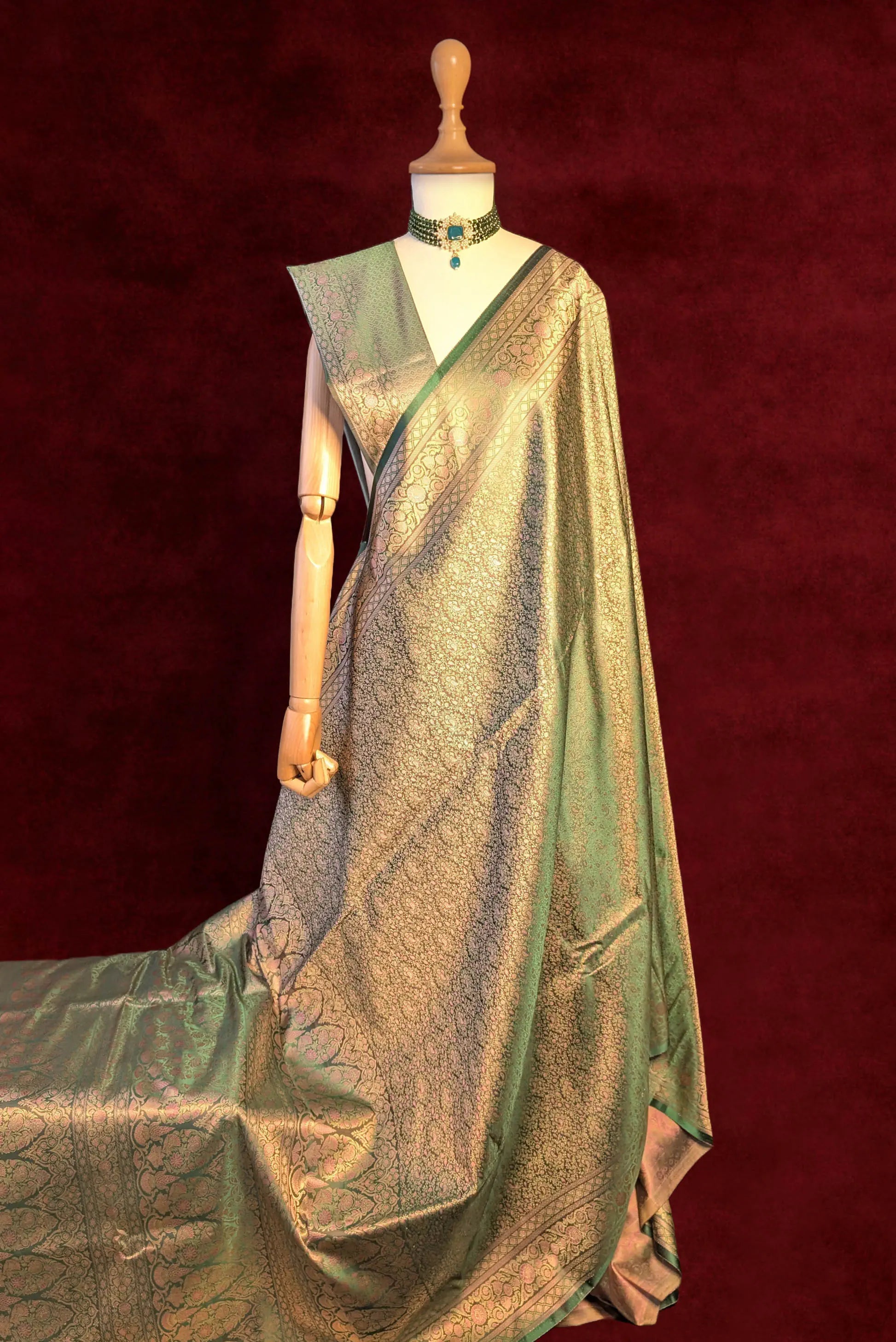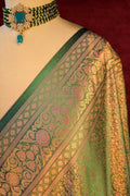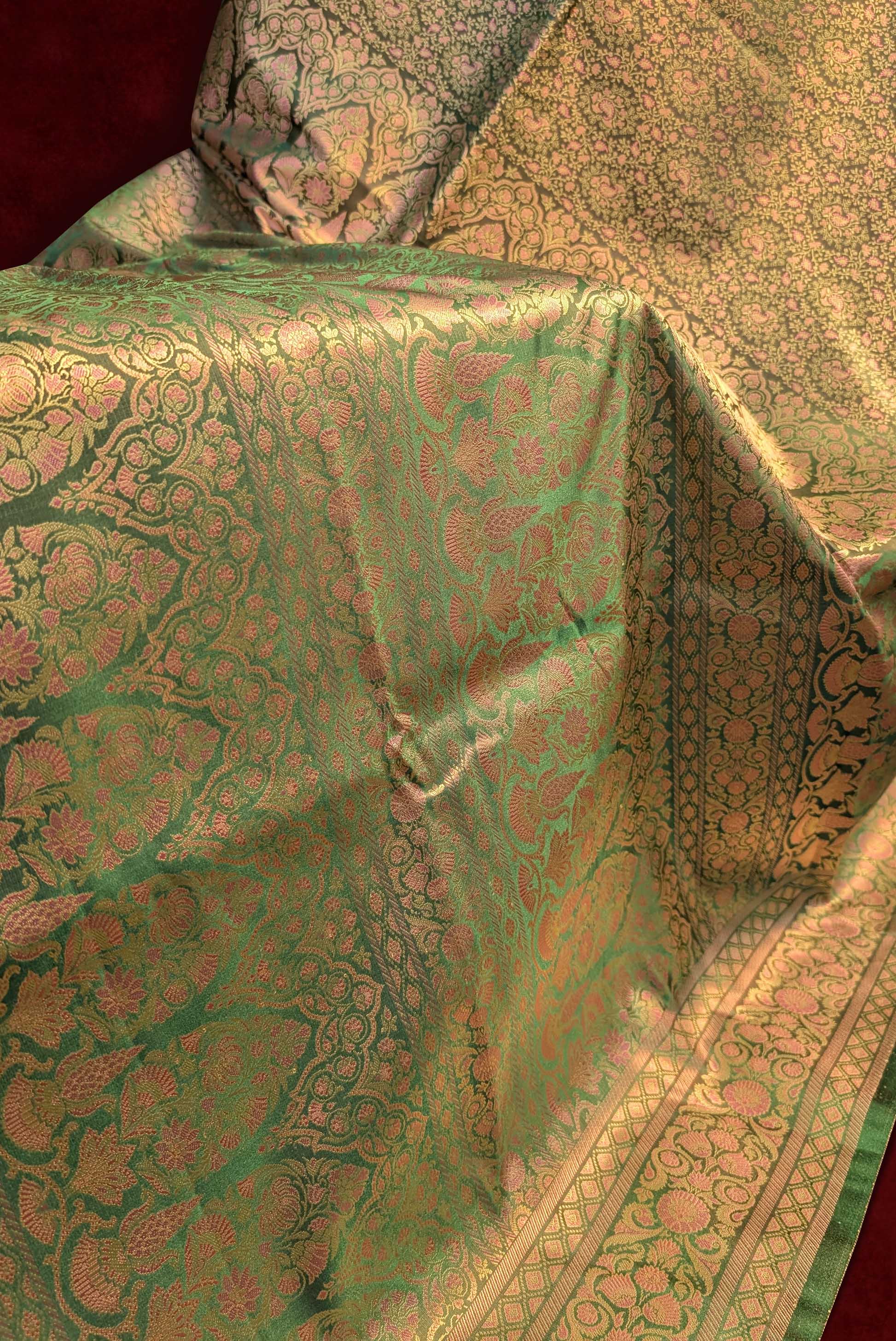 Royal Emerald Green Jamawar Tanchui Banarasi Silk Saree