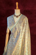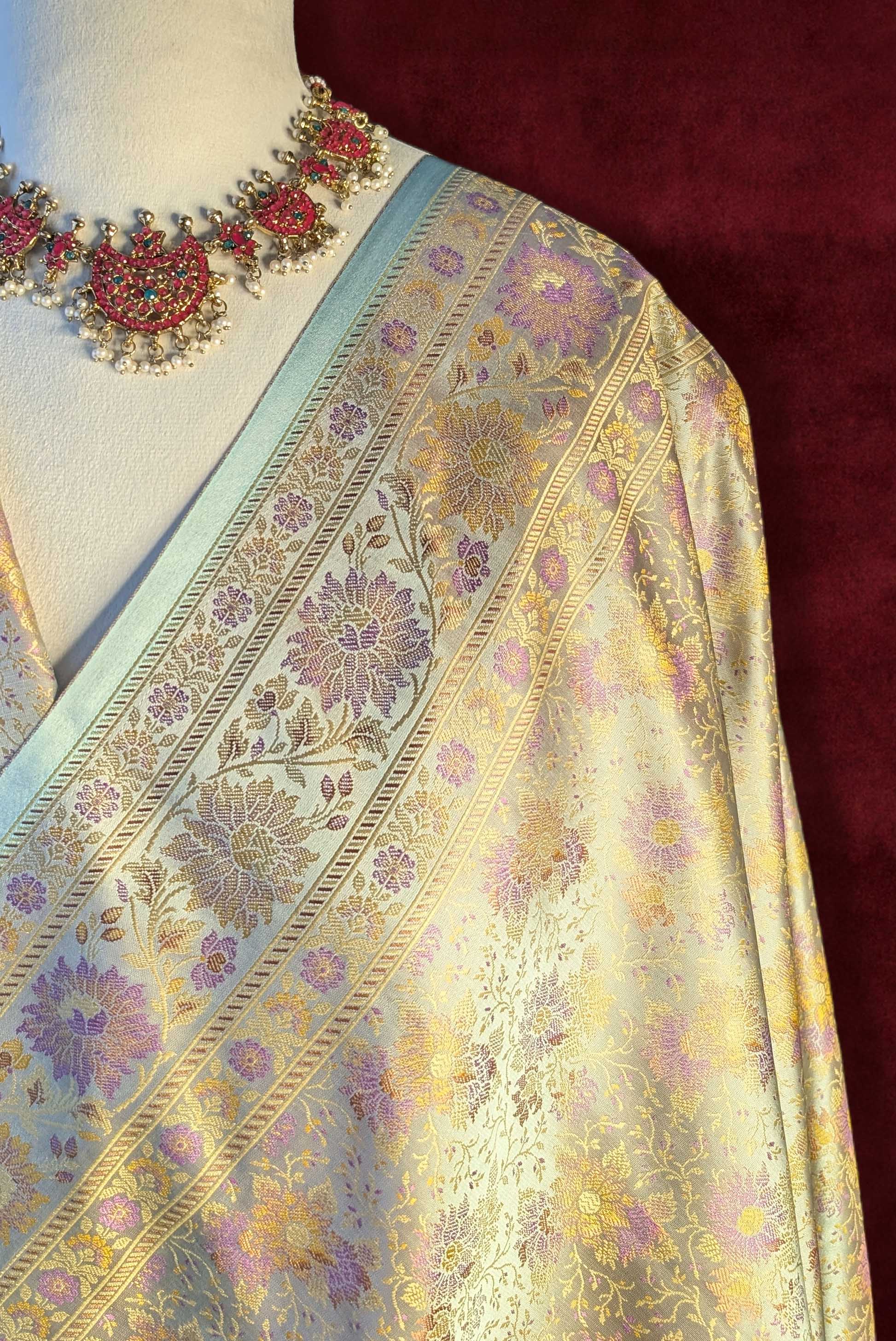 Royalty Icy Mint Green Jamawar Tanchui Banarasi Silk Saree