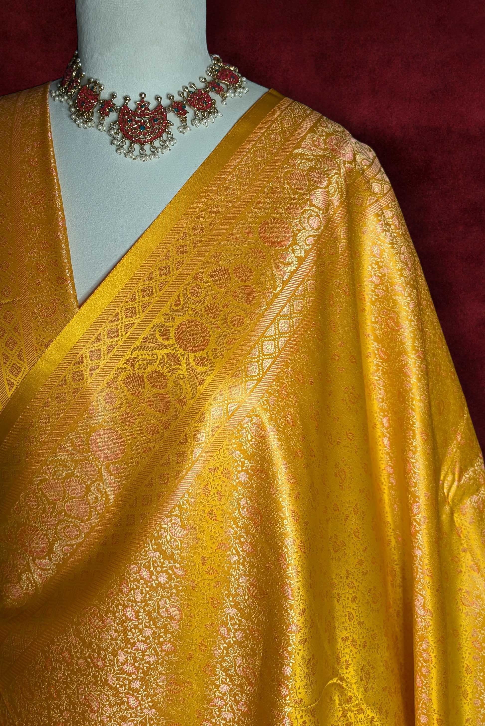 Royalty Mustard Yellow Jamawar Tanchui Banarasi Silk Saree